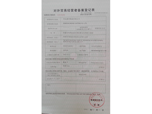 青島墨河鑄造有限公司 聯(lián)系人:董照 電話(huà):13953213469(微信同號(hào)) 座機(jī):0532-87566543 郵箱:mohe@moher.cn QQ:1678294021 地址:青島即墨市泰山一路南端186號(hào)